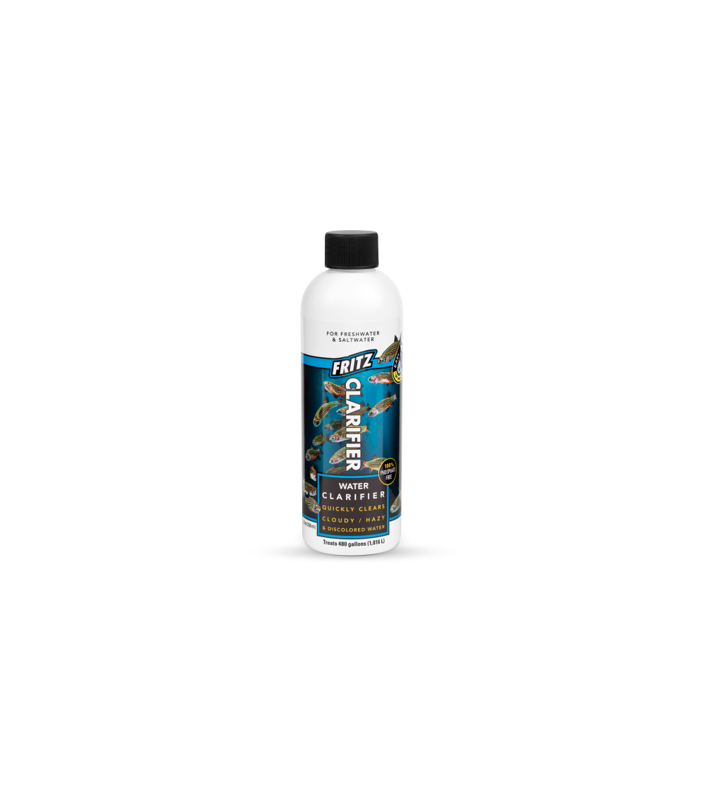 Cuando el agua esta turbia o blanquecina, es debido a una sobrealimentación, bloom bacteriano u otras causas que generan “polvo” y otras partículas en suspensión y que son tan finas que los filtros mecánicos no pueden eliminarlas. Nuestro clarificador las hará rápidamente flocular en partículas mayores que serán rápidamente eliminadas por el filtro y de esta manera tendremos un agua cristalina y transparente. No afecta a la bio-filtración, pH, ni a otros parámetros importantes del agua. Es totalmente seguro para ser usado en acuarios de agua dulce, salada, acuarios de arrecife, estanques. 100% libre de Fosfatos. No contribuirá a futuros problemas de aguas opacas.