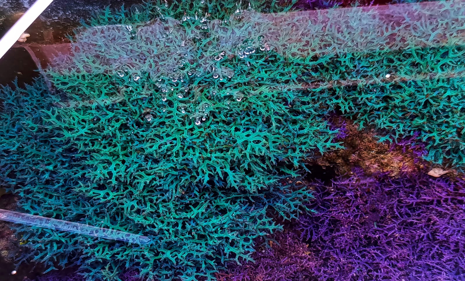 Hypnea pannosa es una macroalga ornamental muy valorada en acuariofilia marina por presentar morfotipos de coloración excepcionales, entre los que destacan el azul iridiscente y el morado intenso.
